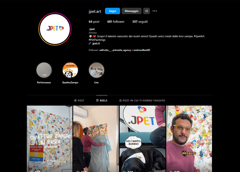 Anche l'arte merita di essere pubblicizzata. Jpet nasce come espressione artistica dedicata al tuo amico a quattro zampe: una tela, dei colori, e nasce un'opera di grande valore emotivo. Grazie ai social, Jpet trova un mezzo di comunicazione efficace, con un riscontro crescente in termini di prenotazioni.