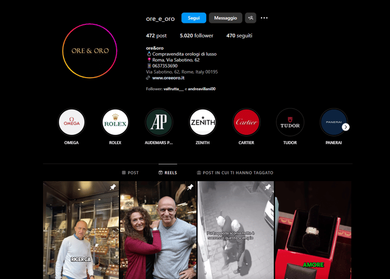 Una gioielleria specializzata nella rivendita di orologi usati di alta gamma, che, una volta approdata sui social, sfrutta le piattaforme per raggiungere con successo clienti di alto profilo, non solo locali, ma anche internazionali.