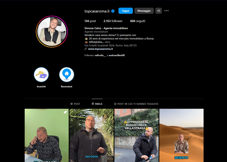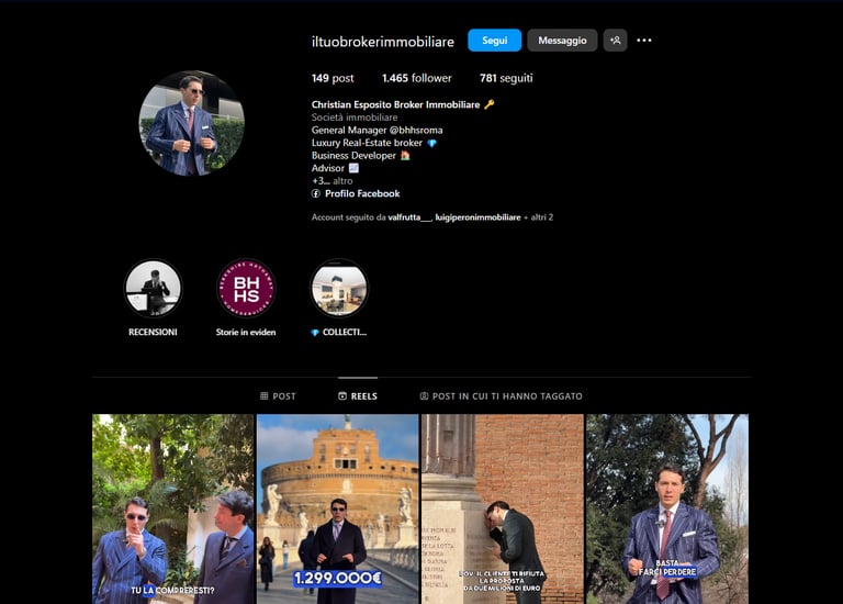 Un agente immobiliare innovativo e fuori dagli schemi, che ha trovato nei social il suo terreno di gioco ideale. Grazie alla sua capacità di distinguersi, è riuscito a creare una connessione autentica con i clienti, raggiungendo un livello di fidelizzazione che si traduce in un continuo flusso di contatti.