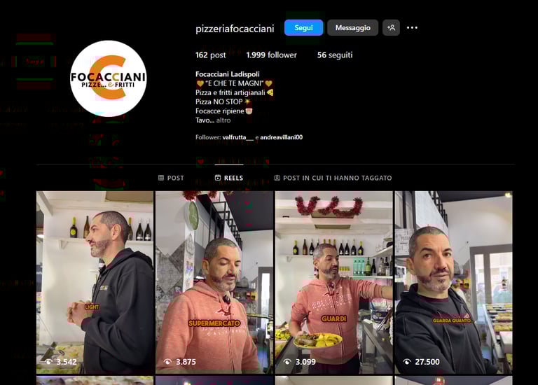 Un'importante pizzeria/tavola calda che ha trovato nei social la chiave del suo successo. La focacceria è costantemente affollata da clienti attratti dalle prelibatezze mostrate online, che non vedono l'ora di assaggiarle.